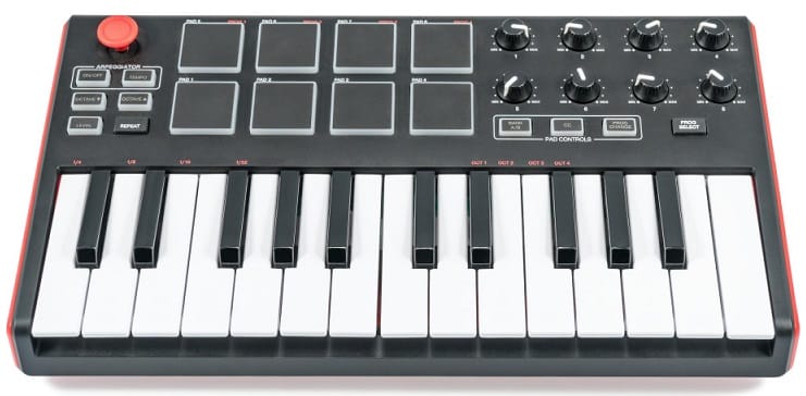 Davul pedleri tek başlarına bir cihaz olarak bulunabildikleri gibi ayrıca bazı cihazların üzerinde de gelebilmektedir. Mesela yukarıdaki resimde görüldüğü gibi bazı MIDI klavyelerde (MIDI keyboards) davul pedleri bulunabilmektedir. Bu sayede hem bir sanal enstrümanı (VSTi – Virtual Studio Technology Instrument), hem de davul/bateri ya da perküsyon enstrümanlarını bu cihazlarda çalabilirsiniz.