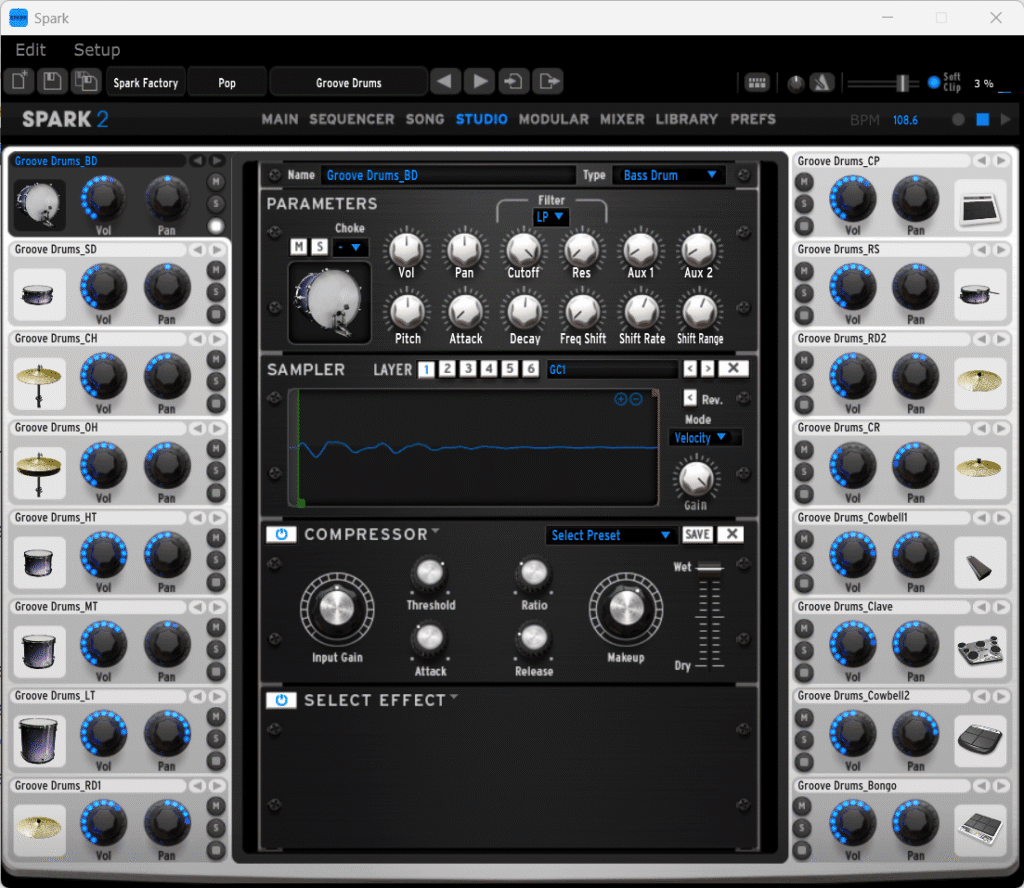 Arturia Spark 2 – Davul Sesleri Değiştirme Ekranı (Studio Edit)