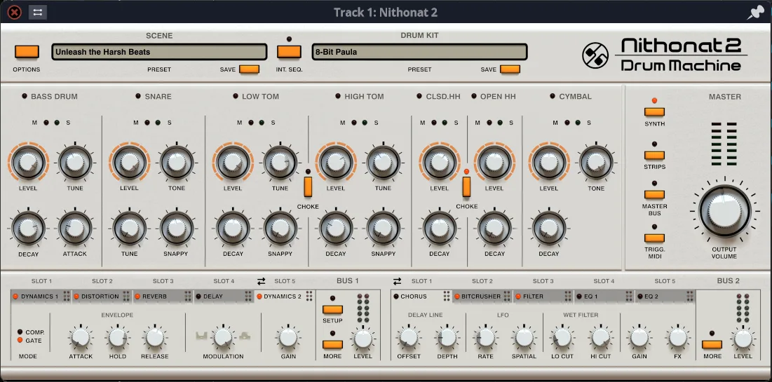 Örneğin aşağıdaki D16 Group firmasına ait Nithonat Davul Makinesi yazılımı görülmektedir. Bu yazılım Roland TR-606 cihazını taklit edecek şekilde programlanmıştır.